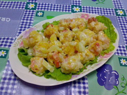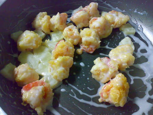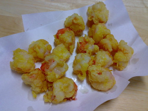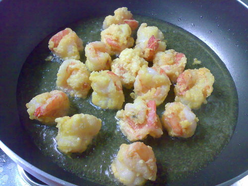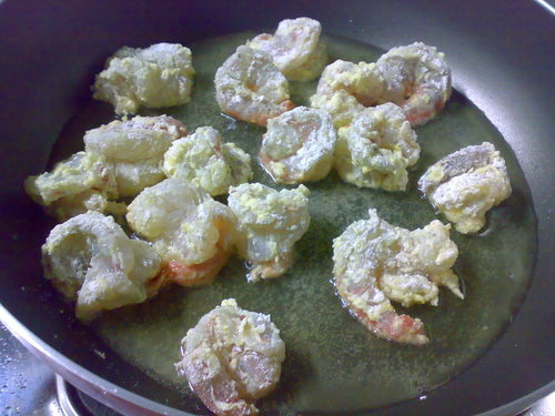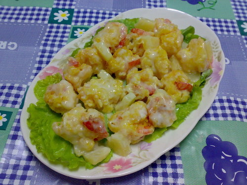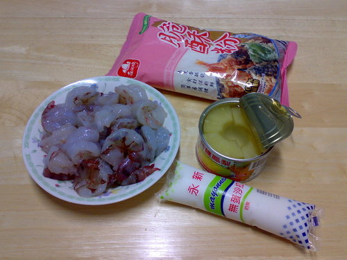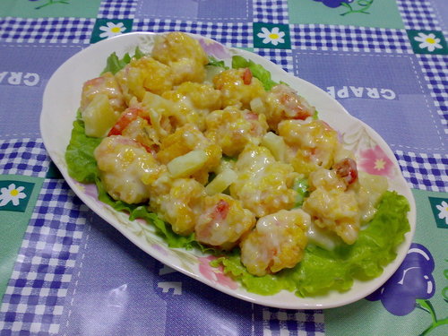 材料:蝦仁 鳳梨罐 無蛋沙拉 脆酥粉