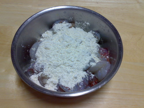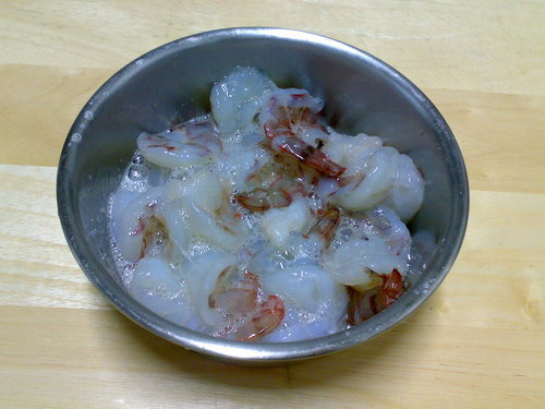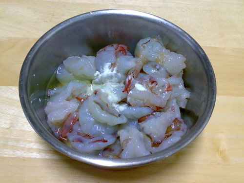 加少許鹽 米酒 蛋白 太白粉抓一下備用