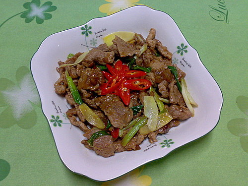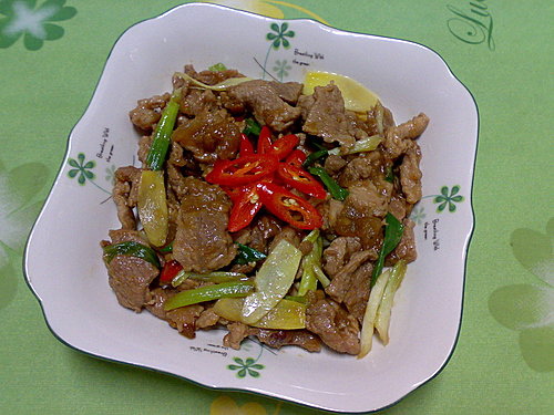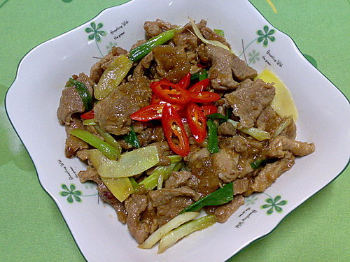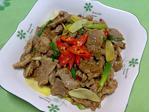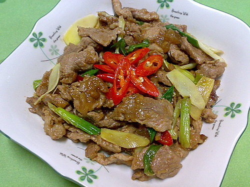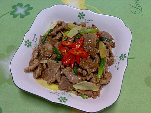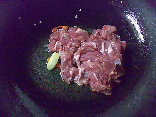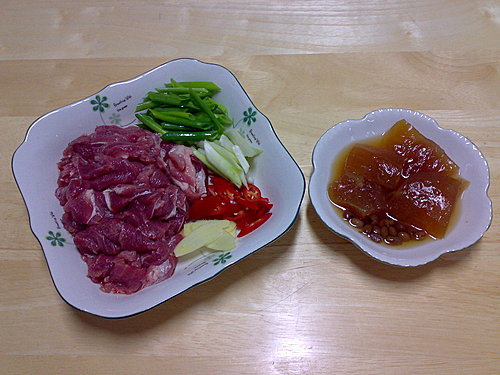 材料: 梅花肉 薑片 蔥段 辣椒 冬瓜醬