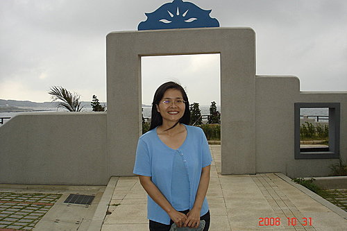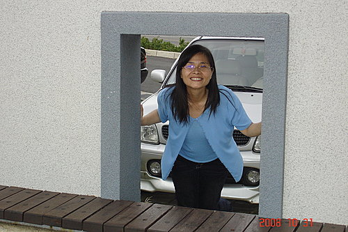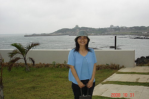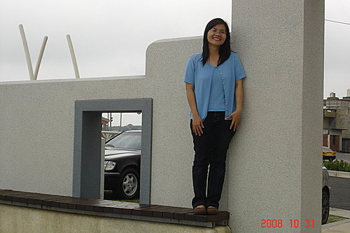 今天就是配合這個水藍色的幸福石門所以也穿了水藍色的衣服
